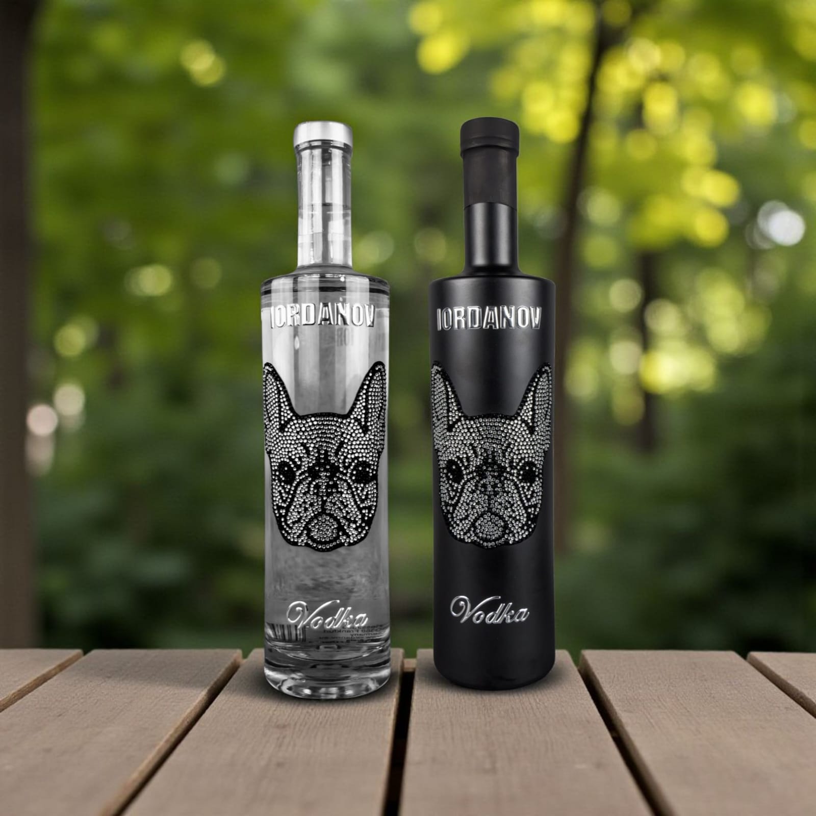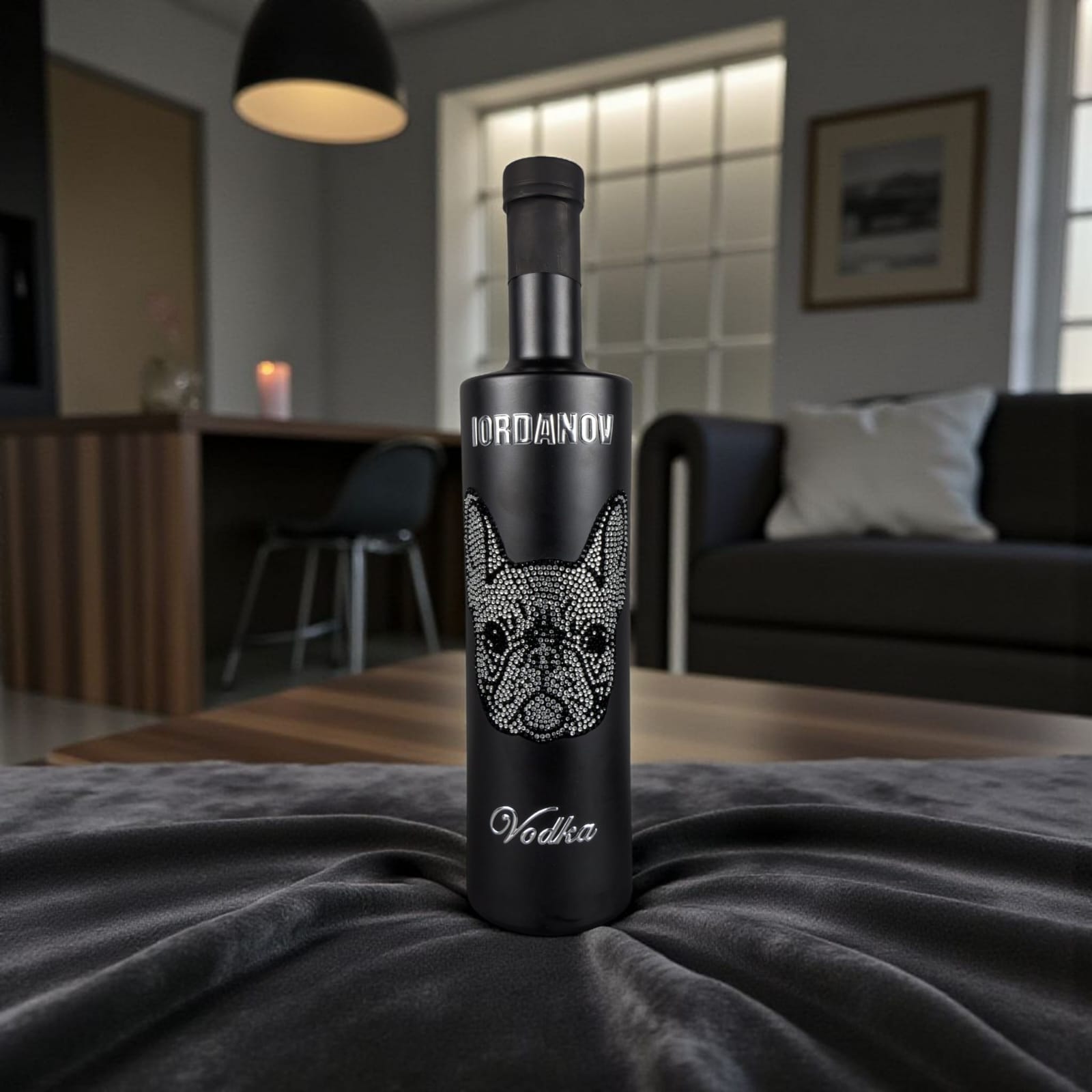 Premium-Vodka in der French Bulldog-Edition: Der Vodka aus 5-fach destilliertem, reinen Weizen in der extravaganten Flasche ist ein absoluter Hingucker für Eure eigene Hausbar oder als Geschenk – Für jeden French Bulldog-Liebhaber ein echtes Muss. Das French Bulldog Motiv wird aufwendig und kunstvoll in Handarbeit gefertigt und aus über 900 Kristallen zusammengesetzt. Die veredelte Flasche sieht nicht nur gut aus, sie ist auch sehr robust. So bleibt sie noch lange nach dem Vodka-Genuss ein Schmuckstück, das alle Blicke auf sich zieht.