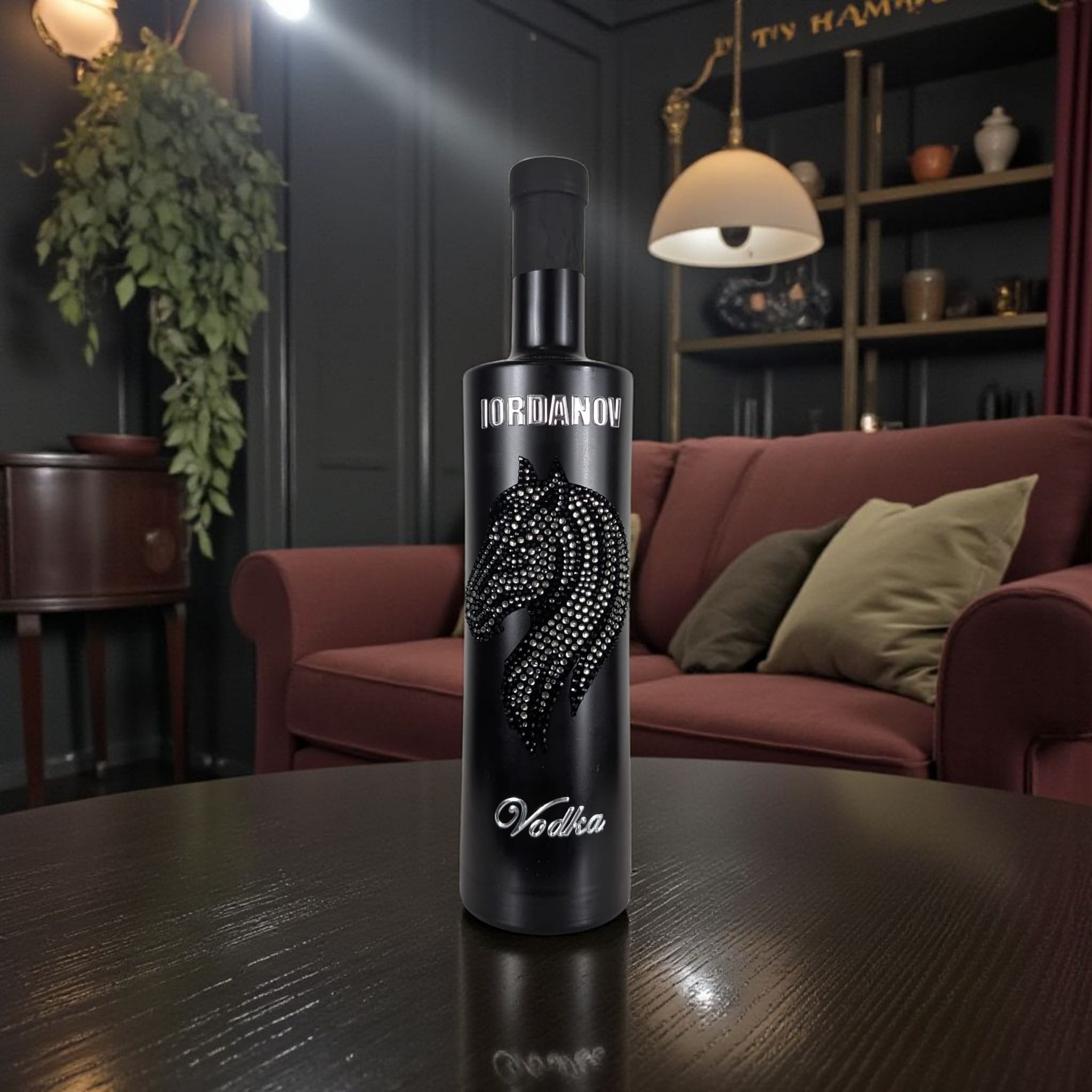 Der Premium-Vodka in der Mustang-Edition: Der Vodka aus 5-fach destilliertem, reinen Weizen in der mit Kristallen voll besetzten Flasche ist ein absoluter Hingucker für Eure eigene Hausbar oder als Geschenk – Für jeden Pferde-Liebhaber ein echtes Muss. Das Mustang Motiv wurde aufwendig und kunstvoll in Handarbeit gefertigt und aus über 900 Kristallen zusammengesetzt. Die veredelte Flasche sieht nicht nur gut aus, sie ist auch sehr robust. So bleibt sie noch lange nach dem Vodka-Genuss ein schillerndes Schmuckstück, das alle Blicke auf sich zieht. Durch die edle, schwarz-matte Lackierung bleibt der Inhalt vor Sonneneinstrahlung geschützt.