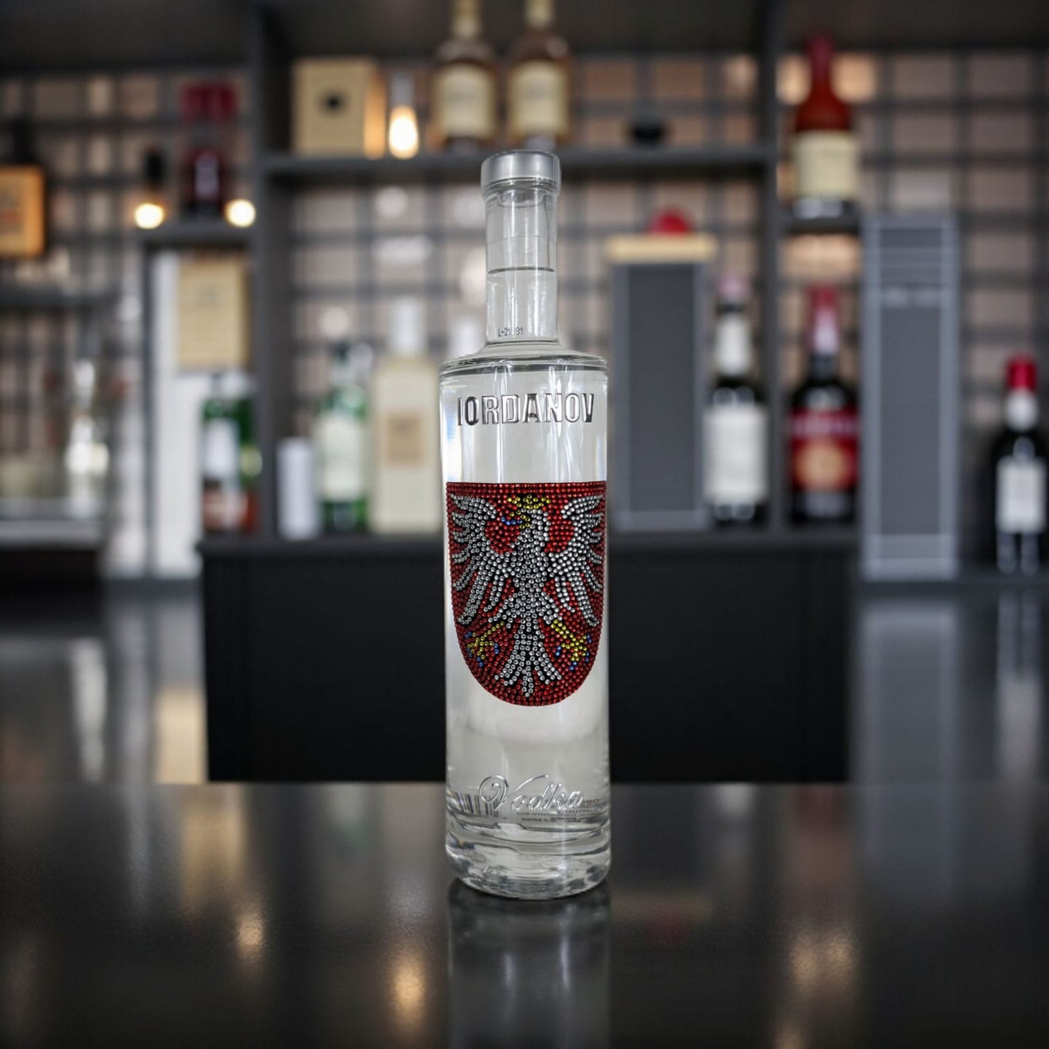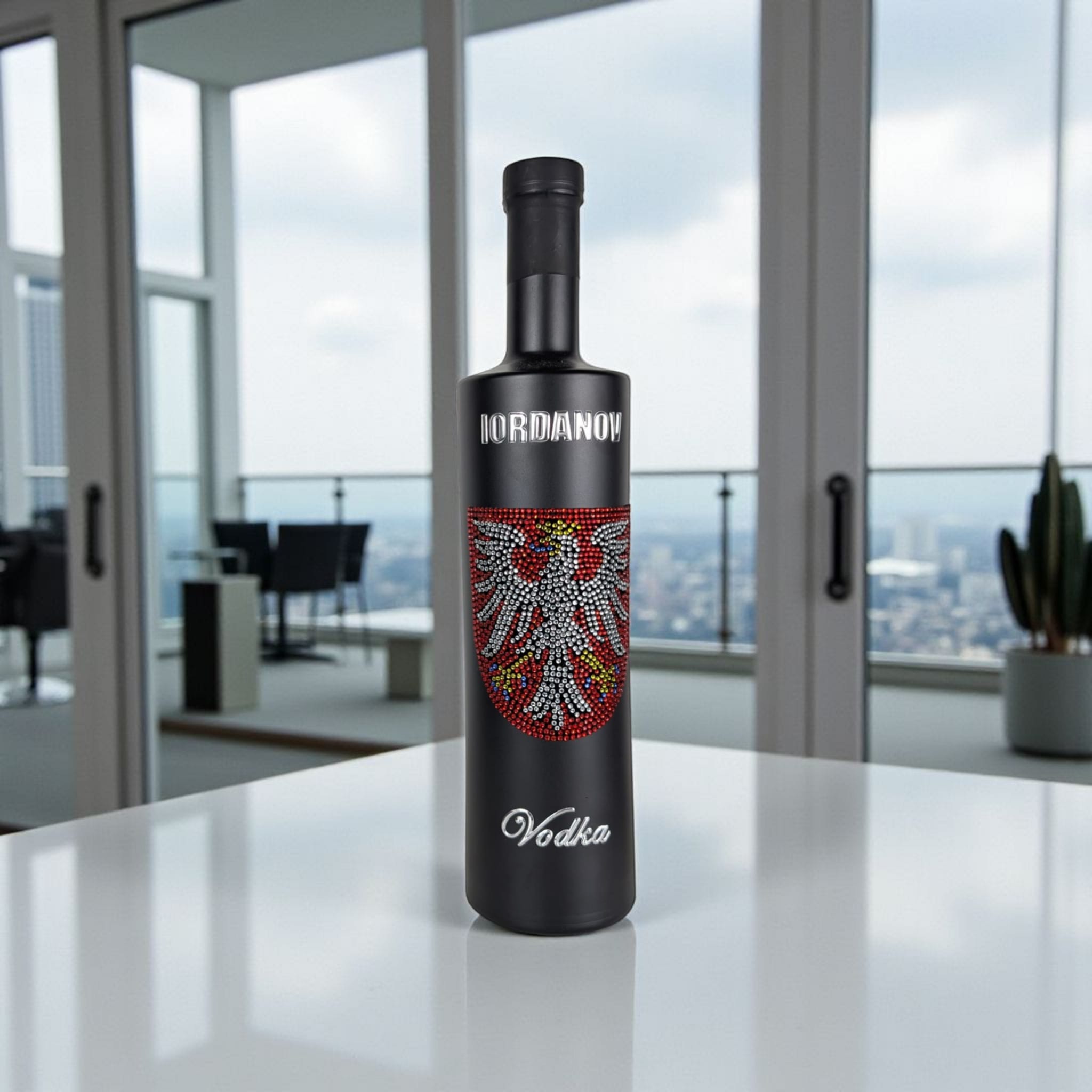 Premium-Vodka in der Stadt Frankfurt-Edition: Der Vodka aus 5-fach destilliertem, reinen Weizen in der extravaganten Flasche ist ein absoluter Hingucker für Eure eigene Hausbar oder als Geschenk – Für jeden Vodka-Liebhaber ein echtes Muss. Das Frankfurter Stadtwappen wird aufwendig und kunstvoll in Handarbeit gefertigt und aus über 900 Kristallen zusammengesetzt. Die veredelte Flasche sieht nicht nur gut aus, sie ist auch sehr robust. So bleibt sie noch lange nach dem Vodka-Genuss ein Schmuckstück, das alle Blicke auf sich zieht.
